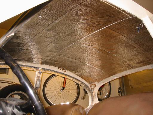insulation was put between the headlining and the roof. Lots of paper clips and